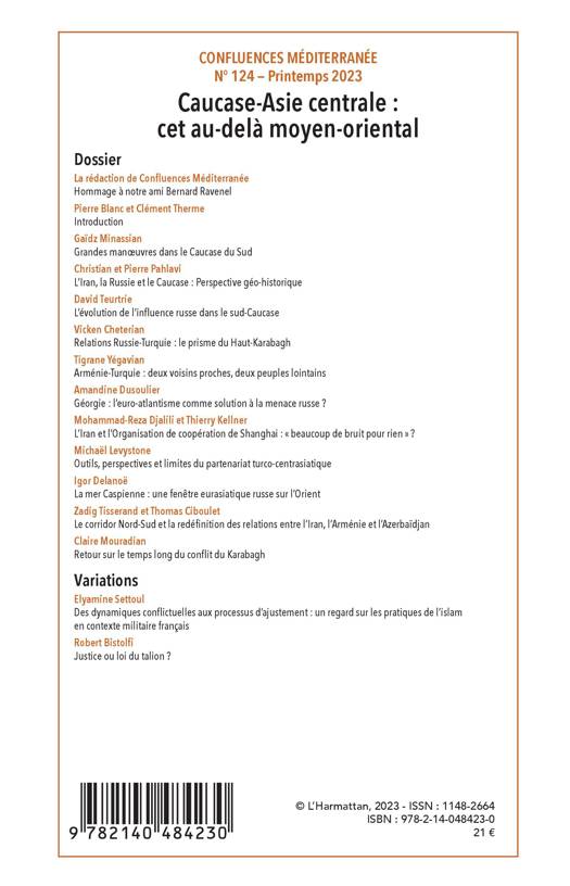 L'ouverture de cet espace géopolitique, à partir de 1991, date de la désintégration de l'URSS, a conduit à des retrouvailles entre ces régions caucasiennes et centrasiatiques avec l'espace moyen-oriental. Cette connexion entre les espaces moyen-orientaux et la région Caspienne se retrouve à nouveau au centre de l'actualité en raison notamment de l'intervention russe en Syrie à partir de 2015 et de la guerre arméno-azerbaïdjanaise de 2020 qui se traduisent par une circulation de combattants entre le Moyen-Orient et les espaces caspien et caucasien. Cette aire nous intéresse donc ici en tant qu'elle se trouve en particulier au coeur des stratégies de deux grands acteurs: la Turquie et l'Iran.