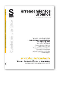 Analizamos y clasificamos las causas de resolución del contrato por el arrendador en los arrendamientos posteriores al 1 de enero de 1995, que aparecen reguladas en los arts. 27 y 35 LAU 29/1994, para las viviendas y para los de uso distinto, respectivamente. ¿Procede la resolución por falta de pago de un mes de renta? ¿Y si se trata de cantidades complementarias como, por ejemplo, el Impuesto sobre Bienes Inmuebles, la Tasa de Basuras u otros servicios y suministros? ¿Cabe el desahucio por el impago de la fianza? ¿Procede resolver el contrato por cesión o subarriendo del inmueble? ¿Y por actividades molestas, insalubres, nocivas, peligrosas o ilícitas? Estos son, entre otros, los motivos para dar por finalizada la relación arrendaticia que muestra la selección de sentencias recientes que hemos realizado.