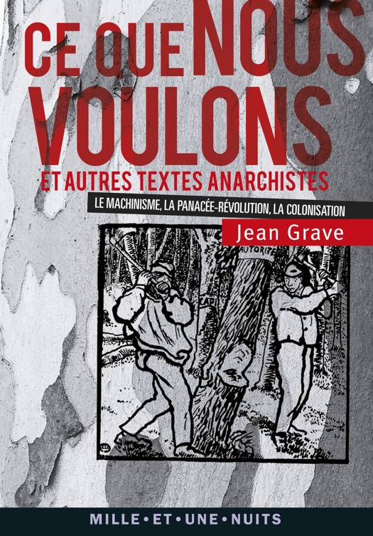 En 1914, celui qui déploie depuis plus de trente ans une « propagande de brochures » fait paraître Ce que nous voulons, manifeste du projet libertaire, condensé virulent de l’idéal anarchiste : « Nous voulons l’affranchissement complet, intégral de l’individu. Nous voulons son affranchissement économique le plus absolu. » Dans la « société future » seront abolis le salaire, la monnaie, la propriété individuelle, l’armée, la démocratie représentative, l’État et ses gouvernements. Dans trois textes antérieurs, Grave détaille sa critique du régime de la IIIe république et de la société industrielle : le machinisme (1898), la colonisation (1912) et préconise l’usage de la révolution (1898).