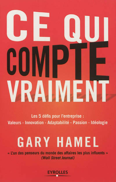 Ce qui compte vraiment n'est pas un énième livre sur la manière de réussir dans un monde dominé par une course effrénée à l'innovation, de plus en plus compétitif et aux contours de plus en plus flous. C'est un plaidoyer passionné, au style unique de Gary Hamel, le gourou du management, pour nous aider à réinventer le sens du travail et la vie dans l'organisation, à un moment clé où l'entreprise, pour durer, doit satisfaire à la fois les exigences des salariés et des actionnaires mais aussi celles de la société en général.