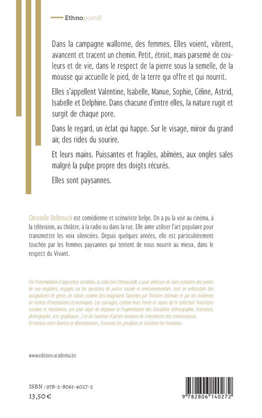 Dans la campagne wallonne, des femmes. Elles voient, vibrent, avancent et tracent un chemin. Petit, étroit, mais parsemé de couleurs et de vie, dans le respect de la pierre sous la semelle, de la mousse qui accueille le pied, de la terre qui offre et qui nourrit.