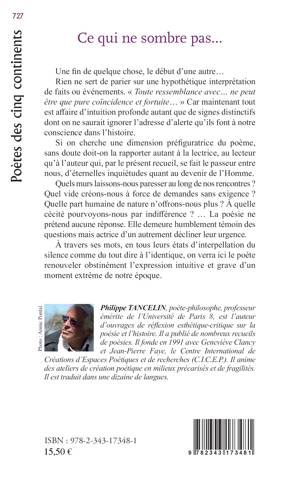 Une fin de quelque chose, le début d'une autre Si on cherche une dimension préfiguratrice du poème, sans doute doit-on la rapporter autant à la lectrice, au lecteur qu'à l'auteur qui, par le présent recueil, se fait le passeur entre nous, d'éternelles inquiétudes quant au devenir de l'Homme. Quels murs laissons-nous paresser au long de nos rencontres ? Quel vide créons-nous à force de demandes sans exigence ? Quelle part humaine de nature n'offrons-nous plus ? À quelle cécité pourvoyons-nous par indifférence ? La poésie ne prétend aucune réponse. Elle demeure humblement témoin des questions mais actrice d'un autrement décliner leur urgence.