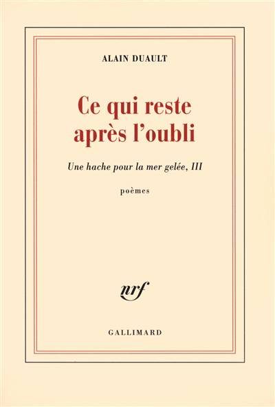Troisième volet de la trilogie poétique inaugurée par Une hache pour la mer gelée et poursuivie avec L'effarant intérieur des ombres, ce volume reprend la forme versifiée et la disposition en carré presque parfait des deux précédents. Le vers est toujours aussi fluide et musical, le poème toujours composé de bribes de chansons, vers et images retrouvés, souvenirs en miette qui font texte et répètent, inlassablement, que l'amour est folie, que le temps passe, que la beauté ne s'épuise pas.