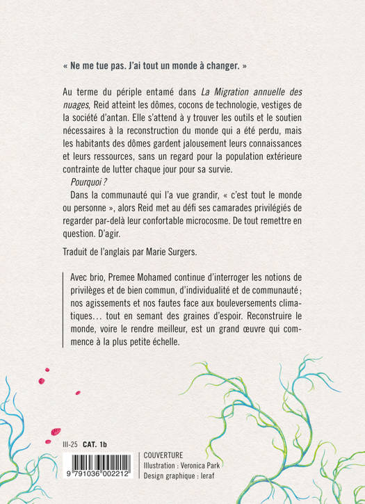 Avec brio, Premee Mohamed continue d'interroger les notions de privilèges et de bien commun, d'individualité et de communauté ; nos agissements et nos fautes face aux bouleversements climatiques... tout en semant des graines d'espoir. Reconstruire le monde, voire le rendre meilleur, est un grand œuvre qui commence à la plus petite échelle.