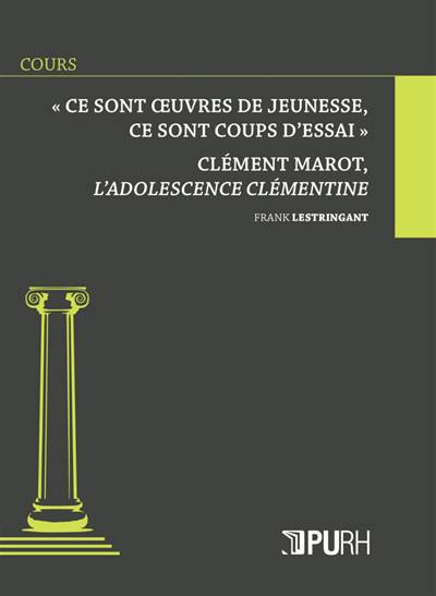 Frank Lestringant « Ce sont oeuvres de jeunesse, ce sont coups d'essai » clément Marot, l'adolescence clémentine