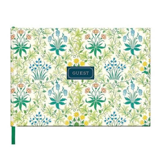 Guest books capture memories with friends and family at your home. The William Morris Celandine Guest Book from Galison features the delicate floral pattern and makes a beautiful addition to your coffee table or entryway so guests can write personalized notes when they visit. Perfect for parties and celebratory events such as weddings and showers.