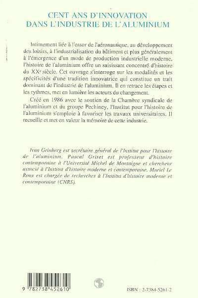 Intimement liée à l'essor de l'aéronautique, au développement des loisirs, à l'industrialisation du bâtiment et plus généralement à l'émergence d'un mode de production industrielle moderne, l'histoire de l'aluminium offre un saisissant concentré d'histoire du XXe siècle. Cet ouvrage s'interroge sur les modalités et les spécificités d'une tradition innovatrice qui constitue un trait dominant de l'industrie de l'aluminium. Il en retrace les étapes et les rythmes, met en lumière les acteurs du changement.