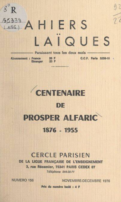 3. Centenaire de Prosper Alfaric, 1876-1955