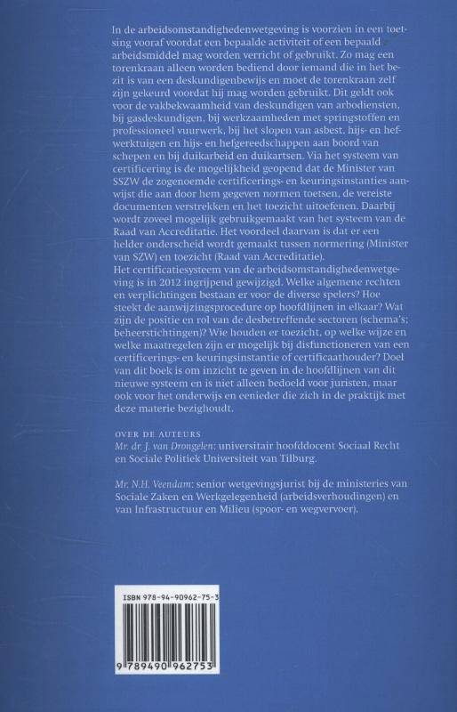 Het certificatiesysteem van de arbeidsomstandighedenwetgeving is in 2012 ingrijpend gewijzigd. Welke algemene rechten en verplichtingen bestaan er voor de diverse spelers? Hoe steekt de aanwijzingsprocedure op hoofdlijnen in elkaar? Wat zijn de positie en rol van de desbetreffende sectoren (schema’s; beheerstichtingen)? Wie houden er toezicht, op welke wijze en welke maatregelen zijn er mogelijk bij disfunctioneren van een certificerings- en keuringsinstantie of certificaathouder? Doel van dit boek is om inzicht te geven in de hoofdlijnen van dit nieuwe systeem en is niet alleen bedoeld voor juristen, maar ook voor het onderwijs en eenieder die zich in de praktijk met deze materie
