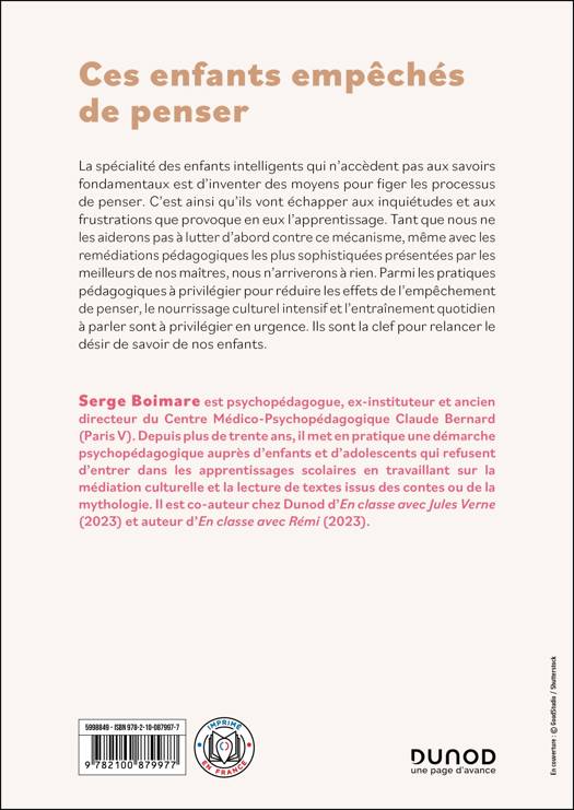 La spécialité des enfants intelligents qui n'accèdent pas aux savoirs fondamentaux est d'inventer des moyens pour figer les processus de penser. C'est ainsi qu'ils vont échapper aux inquiétudes et aux frustrations que provoque en eux l'apprentissage. Tant que nous ne les aiderons pas à lutter d'abord contre ce mécanisme, même avec les remédiations pédagogiques les plus sophistiquées présentées par les meilleurs de nos maîtres, nous n'arriverons à rien. Parmi les pratiques pédagogiques à privilégier pour réduire les effets de l'empêchement de penser, le nourrissage culturel intensif et l'entraînement quotidien à parler sont à privilégier en urgence. ils sont la clef pour relancer le désir de savoir de nos enfants.