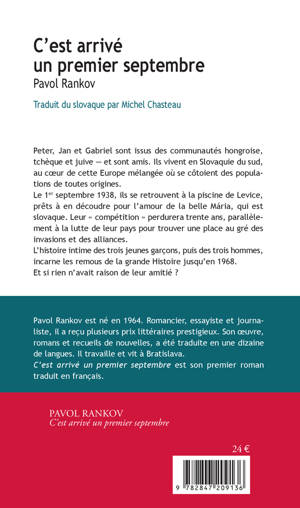 Peter, Jan et Gabriel sont hongrois, slovaque et juif - et amis. Le 1er septembre 1938, ils se retrouvent à la piscine de Levice, dans le sud de la Slovaquie, prêts à en découdre pour l'amour de la belle Maria. Leur "lutte" perdurera trente ans encore, parallèlement à celle de leur pays qui se bat aussi pour trouver sa place au sein de l'Europe. L'histoire intime des trois jeunes garçons, puis des trois hommes, incarne les remous de la grande Histoire de 1938 à 1968. Rien n'aura raison de leur amitié.