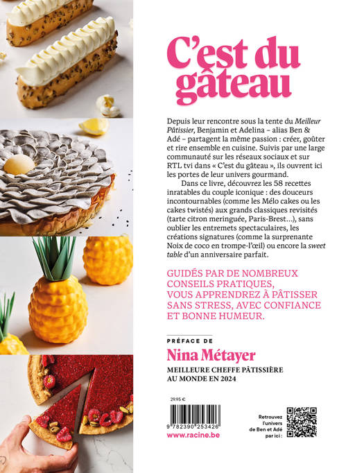 Depuis leur rencontre sous la tente du Meilleur Pâtissier, Benjamin et Adelina – alias Ben & Adé - partagent la même passion : créer, goûter et rire ensemble en cuisine. Suivis par une large communauté sur les réseaux sociaux et sur RTL tvi dans ' C'est du gâteau ', ils ouvrent ici les portes de leur univers gourmand.