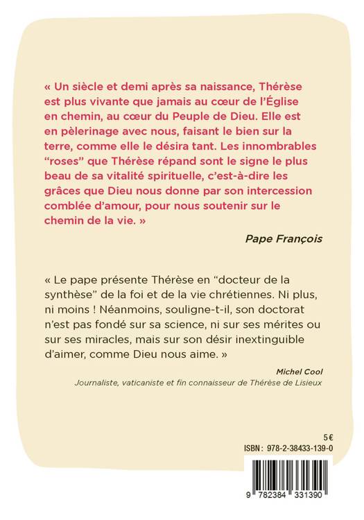 « Aujourd'hui, donc, laissons-nous aider par le témoignage de Sainte Thérèse. Elle est née il y a 150 ans et, à l'occasion de cet anniversaire, j'ai l'intention de lui dédier une Lettre Apostolique. […] Avant tant de moyens, de méthodes et de structures, qui parfois détournent de l'essentiel, l'Église a surtout besoin de cœurs comme celui de Thérèse, de cœurs qui attirent à l'amour et rapprochent de Dieu. Et demandons à la sainte la grâce de surmonter notre égoïsme et demandons la passion d'intercéder pour que Jésus soit connu et aimé. » Pape François, Audience générale du 7 juin 2023