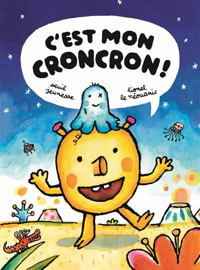 Croncron, c’est le doudou de Pouik, un petit trucmuche qui vit sur la planète Truc. Pouik ne se sépare jamais de son croncron. Avec lui, il partage tout.