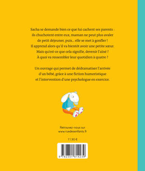 Sacha se demande bien ce que lui cachent ses parents : ils chuchotent entre eux, maman ne peut plus avaler de petit déjeuner, puis… elle se met à gonfler ! Il apprend alors qu'il va bientôt avoir une petite sœur. Mais qu'est-ce que cela signifie, devenir l'aîné ? À quoi va ressembler leur quotidien à quatre ?