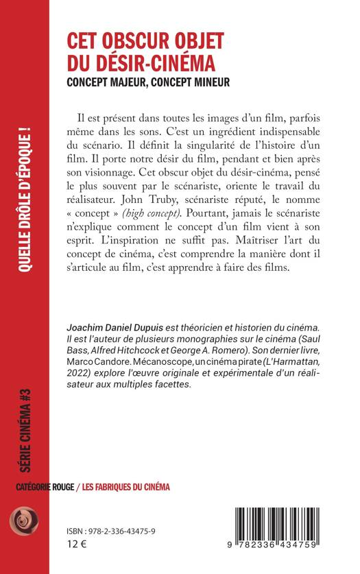 Il est présent dans toutes les images d'un film, parfois même dans les sons. C'est un ingrédient indispensable du scénario. Il définit la singularité de l'histoire d'un film. Il porte notre désir du film, pendant et bien après son visionnage. Cet obscur objet du désir-cinéma, pensé le plus souvent par le scénariste, oriente le travail du réalisateur. John Truby, scénariste réputé, le nomme concept (high concept). Pourtant, jamais le scénariste n'explique comment le concept d'un film vient à son esprit. L'inspiration ne suffit pas. Maîtriser l'art du concept de cinéma, c'est comprendre la manière dont il s'articule au film, c'est apprendre à faire des films.