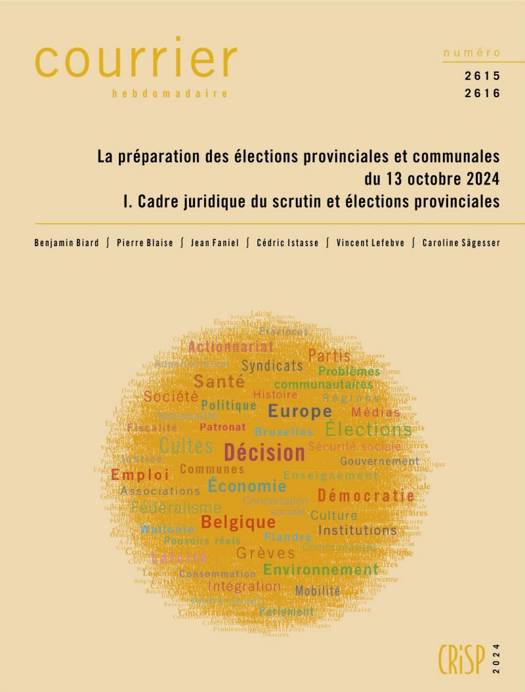 Le 13 octobre 2024 auront lieu les élections communales et provinciales. Elles mèneront au renouvellement de plusieurs centaines d’organes locaux : l’ensemble des conseils communaux et des collèges communaux (ou collèges des bourgmestre et échevins) du pays, l’ensemble des conseils provinciaux et collèges provinciaux (ou députations) de Wallonie et de Flandre, et l’ensemble des conseils et collèges de district de la commune d’Anvers. Ce Courrier hebdomadaire est consacré à la préparation de ce scrutin. Afin d’aider à comprendre les principales règles en vigueur et à en saisir les enjeux et implications, ce premier volume présente de façon synthétique les différents systèmes électoraux en vigueur, en insistant en particulier sur les modifications qui ont été apportées à ceux-ci durant la législature 2019-2024. Les thématiques suivantes sont abordées : les fusions de communes, le caractère obligatoire ou non du vote, le droit de vote des étrangers, les modalités du vote (vote papier ou vote électronique avec preuve papier), les conditions d’éligibilité, les règles relatives à la présence de femmes et d’hommes sur les listes de candidats, les conditions de dépôt de liste, l’attribution des sièges entre les listes, la désignation des suppléants, l’effet dévolutif de la case de tête, le mécanisme de l’apparentement provincial, la désignation du bourgmestre, les règles de non-cumul et d’incompatibilité, etc. Ce volume est également consacré aux élections provinciales. Il rappelle le résultat du scrutin de 2018 et la composition des organes provinciaux qui en avaient été issus, puis il analyse les listes de candidats déposées en vue de celui du 13 octobre 2024.