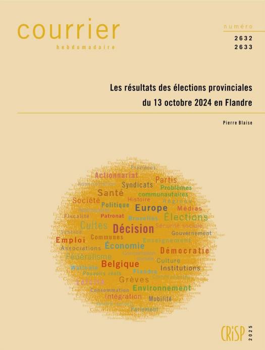 Le 13 octobre 2024 a eu lieu, pour la sixième fois, l’élection des cinq conseils provinciaux de Flandre. Par rapport à celui qui s’était tenu six ans plus tôt, ce scrutin a été marqué, dans des proportions différentes, par la hausse des scores de la N-VA, du VB, de Vooruit et du PVDA et par la baisse de ceux du CD&V, de Groen et de l’Open VLD. Ce Courrier hebdomadaire commence par examiner les taux de participation et d’abstention. Ensuite, il se penche de manière distincte sur chacune des provinces flamandes. Successivement, il présente les résultats et le nombre de sièges obtenus par les différentes listes en présence, procède à une comparaison avec les résultats des élections provinciales de 2018, et propose une analyse par district des résultats des listes. En outre, des graphiques exposent l’évolution des résultats électoraux depuis 1974. Enfin, il est procédé à une analyse globale des résultats enregistrés, à l’échelle de la Flandre, par les partis en présence lors des scrutins provinciaux de 2018 et de 2024. La composition des exécutifs provinciaux est également détaillée, de même que la répartition par sexe des personnes élues pour siéger dans les conseils provinciaux et des membres des députations provinciales. >Pour terminer, les performances électorales que les partis néerlandophones ont enregistrées en Flandre lors du scrutin provincial du 13 octobre 2024 sont comparées avec les scores qu’ils avaient obtenus lors de vingt autres élections récentes s’étant tenues depuis 1994. >Portant sur un scrutin qui a pris place quelques mois seulement après les élections multiples de juin 2024, cet examen livre des indications intéressantes.