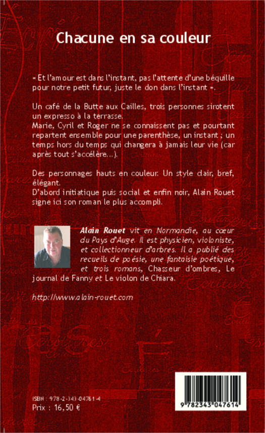 Un café de la Butte aux Cailles, trois personnes sirotent un expresso à la terrasse. Marie, Cyril et Roger ne se connaissent pas et pourtant repartent ensemble pour une parenthèse, un instant ; un temps hors du temps qui changera à jamais leur vie (car, après, tout s'accélère...). Des personnages hauts en couleur. Un style clair, bref, élégant. D'abord initiatique puis social et enfin noir, l'auteur signe ici son roman le plus accompli.