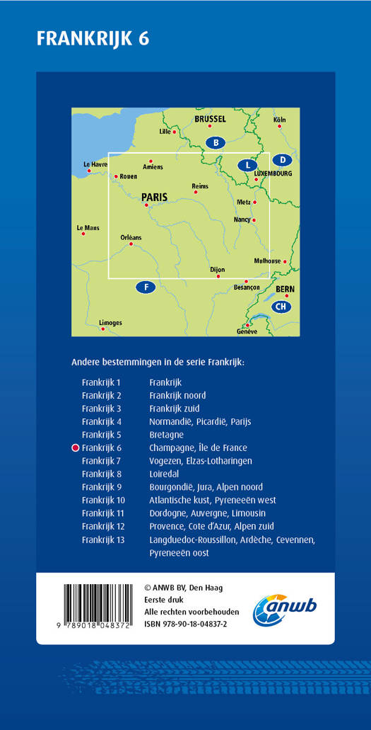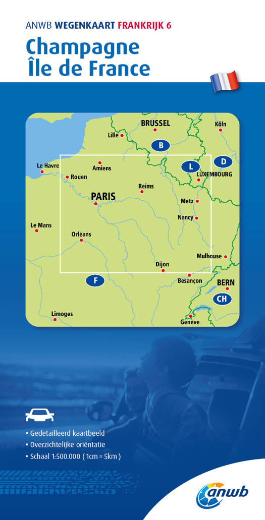 Met de gedetailleerde en nauwkeurige ANWB Wegenkaart Frankrijk 6. Champagne, Île de France ga je goed voorbereid op autovakantie. Schaal van 1:500.000 (1 cm = 5 km).
