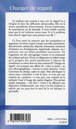 La tendance qui consiste à tout voir en négatif est à l'origine de bien des difficultés relationnelles. Il nous semble certains jours que la vie s'acharne contre nous. Et si le problème était dans le regard que nous portons sur elle ? En s'appuyant sur des témoignages vivants et en proposant des analyses précises, cet ouvrage livre un diagnostic en même temps qu'il propose des outils permettant à chacun de transformer sa vision dans un sens constructif. Plus qu'une simple technique, "voir bien" s'avère à la réflexion une vertu qui est peut-être le nerf de la vie éthique et spirituelle.