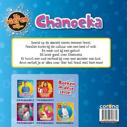 Overal op de wereld vieren mensen feest. Feesten horen bij de cultuur van een land of volk. En vaak ook bij een geloof. Dit boek gaat over Chanoeka. Er hoort een oud verhaal bij over een wonder van God. Aron vertelt je er alles over. Vier het feest met hem mee!