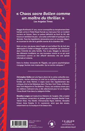 Maggie Burkhardt, 81 ans, veuve cosmopolite au tempérament bien trempé, arrive à l’hôtel Royal Karnak au Caire pour fuir un incident survenu en Suisse. Dans ce palace défraîchi au bord du Nil, elle trouve un semblant de paix : une suite confortable et quelques amis discrets. Tous les ingrédients nécessaires pour un nouveau départ, en incarnant le rôle de la gentille mamie de la chambre 309.