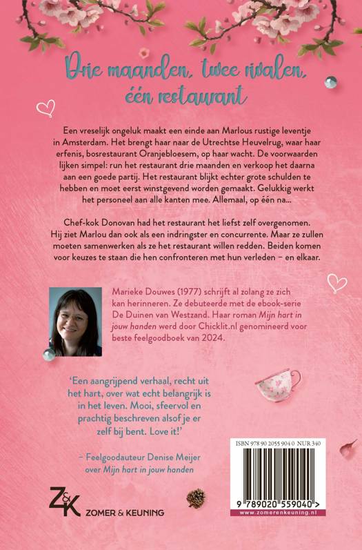 Een vreselijk ongeluk maakt een einde aan Marlous rustige leventje in Amsterdam. Het brengt haar naar de Utrechtse Heuvelrug, waar haar erfenis, bosrestaurant Oranjebloesem, op haar wacht. De voorwaarden lijken simpel: run het restaurant drie maanden en verkoop het daarna aan een goede partij. Het restaurant blijkt echter grote schulden te hebben en moet eerst winstgevend worden gemaakt. Gelukkig werkt het personeel aan alle kanten mee. Allemaal, op één na...