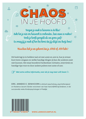 Herkenbare verhalen en tips voor en door pubers met AD(H)D Vergeet je vaak te luisteren in de klas? Lukt het je niet om huiswerk te onthouden, laat staan te maken? Voelt je hoofd geregeld als een grote zeef? En vraag jij je vaak af hoe het komt dat jij altijd iets kwijt bent? Misschien heb je net gehoord dat je ADHD of ADD hebt? Dit boek legt je in heldere taal uit wat ADHD en ADD is, hoe je ermee kunt leren omgaan en welke handige dingen jij kan die anderen juist niet kunnen. Het staat boordevol herkenbare verhalen, interviews en handige tips voor en door andere pubers met ADHD of ADD. Met extra online informatie, voor als je nog meer wilt lezen.