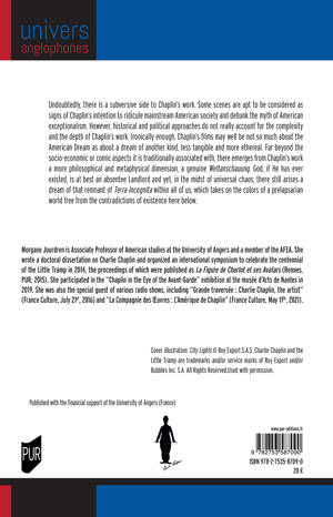 Undoubtedly, there is a subversive side to Chaplin’s work. Some scenes are apt to be considered as signs of Chaplin’s intention to ridicule mainstream American society and debunk the myth of American exceptionalism. However, historical and political approaches do not really account for the complexity and the depth of Chaplin’s work. Ironically enough, Chaplin’s films may well be not so much about the American Dream as about a dream of another kind, less tangible and more ethereal. Far beyond the socio-economic or comic aspects it is traditionally associated with, there emerges from Chaplin’s work a more philosophical and metaphysical dimension, a genuine Weltanschauung. God, if He has ever existed, is at best an absentee Landlord and yet, in the midst of universal chaos, there still arises a dream of that remnant of Terra Incognita within all of us, which takes on the colors of a prelapsarian world free from the contradictions of existence here below.