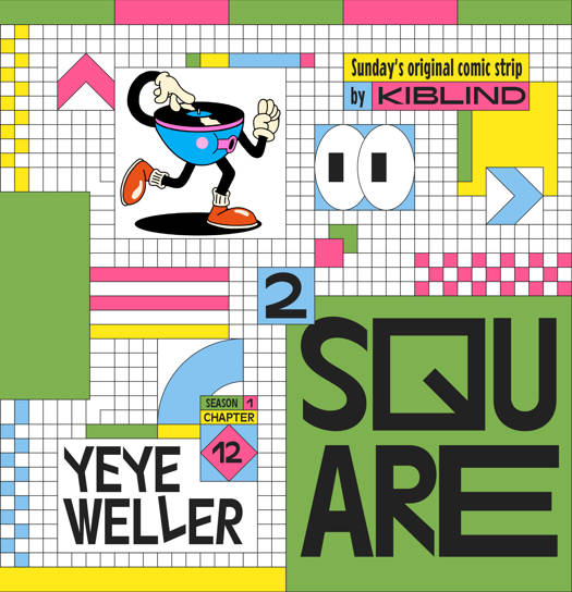 Depuis mars 2021, Kiblind a pris pour habitude de challenger un·e illustrateur·rice chaque mois sur Instagram, à travers un format original nommé « SQUARE ² ». Le défi à relever ? Réaliser 4 strips en respectant la règle d’or suivante : un carré au centre de la première image / 4 cases / 4 côtés / une déclinaison en 4 couleurs.