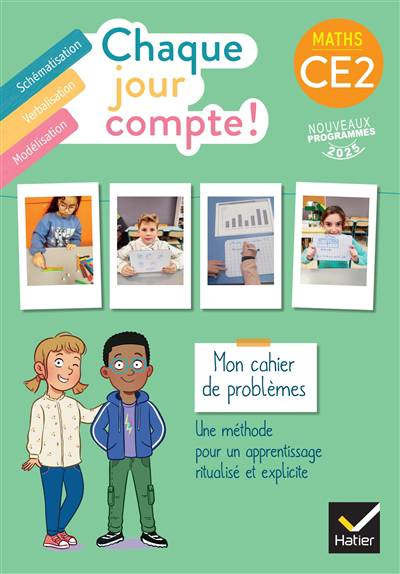 Le cahier de problèmes CE2 de la collection de maths Chaque jour compte, une méthode structurante et spiralaire fondée sur la ritualisation des apprentissages et l’enseignement explicite qui intègre la résolution de problèmes et la manipulation.