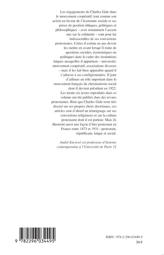 Les engagements de Charles Gide dans le mouvement coopératif, son action en faveur de l'économie sociale et ses prises de position éthiques, politiques et philosophiques sont indissociables de ses convictions protestantes. Il devient président du mouvement français du christianisme social en 1922. Les textes reproduits ici ont été publiés dans des revues protestantes et illustrent aussi une façon d'être protestant en France entre 1873 et 1931 : protestant, républicain, laïque et social.