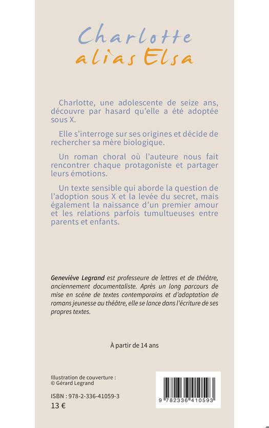 Charlotte, une adolescente de seize ans, découvre par hasard qu'elle a été adoptée sous X. Elle s'interroge sur ses origines et décide de rechercher sa mère biologique. Un roman choral où l'auteure nous fait rencontrer chaque protagoniste et partager leurs émotions. Un texte sensible qui aborde la question de l'adoption sous X et la levée du secret, mais également la naissance d'un premier amour et les relations parfois tumultueuses entre parents et enfants. À partir de 14 ans