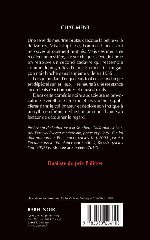 Une série de meurtres brutaux secoue la petite ville de Money, Mississippi : des hommes blancs sont retrouvés atrocement mutilés. Mais ces meurtres recèlent un mystère, car sur chaque scène de crime on retrouve un second cadavre qui ressemble comme deux gouttes d'eau à Emmett Till, un garçon noir lynché dans la même ville en 1955. Lorsqu'un duo d'enquêteurs tout en second degré est dépêché sur les lieux, il se heurte à une résistance aux relents réactionnaires et nauséabonds... Dans cette comédie noire audacieuse et provocatrice, Everett a le racisme et les violences policières dans le collimateur et déploie son intrigue à un rythme effréné, ne laissant aucune chance au lecteur de détourner le regard.