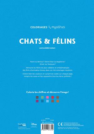 Marie ou Berlioz ? Shere Khan ou Bagheera ? Olivier ou Toulouse ? Retrouve les félins les plus célèbres et emblématiques des films d'animation Disney dans ces 100 coloriages mystères. Choisis bien tes couleurs en suivant les codes sur chaque page, remplis les cases et fais apparaître tous tes héros préférés !