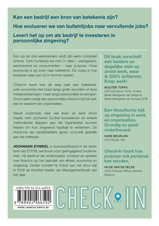 Check-In toont hoe de weg naar een betekenisvolle economie niet loopt langs grote woorden of dure missieverklaringen, maar langs persoonlijke ervaringen. Zinvol werk vraagt een persoonlijke check-in bij het wat, wie en waarom van organisaties.