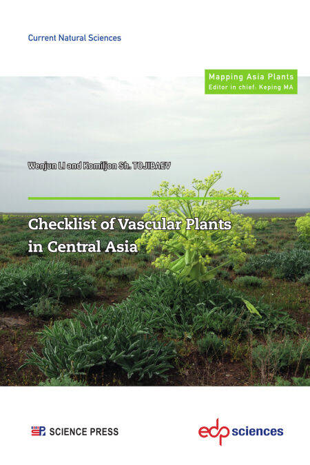 The vascular plants distributed in Central Asia comprehensive and systematic are recorded in this book. Families are arranged systematically, but genera and species are arranged in alphabetical order. The classification for lycophytes and ferns, gymnosperm and angiosperm were based on PPG I (2016), Christenhusz et al. (2011) and APG IV (2016), respectively. The family, genus, Latin name, important synonym and distributed country in Central Asia were recorded for each species. The original data of this book was based on the botanical records, floras and checklists published in five Central Asia countries. All the data were cleaned according the latest research progress in taxonomy and systematics. In total, 9643 vascular taxa (248 subspecies and 68 varieties) belonging to 1198 genera and 139 families were recorded in Central Asia, including 70 taxa of lycophytes and ferns, 36 taxa of gymnosperm, and 9537 taxa of angiosperm. The book also includes some introduced species (*) and species of doubtful distribution (?).