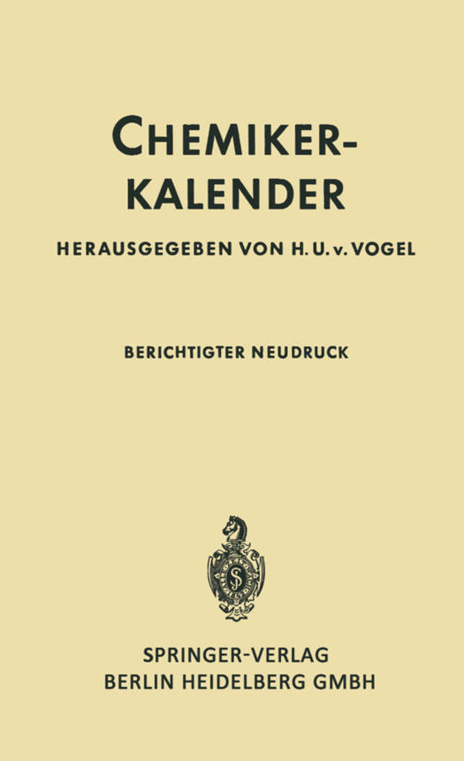 Der Chemikerkalender wurde im Jahre 1880 von Prof. Dr. Rudolf Bie dermann begrundet. Im Laufe der Jahre entwickelte er sich zu einem unentbehrlichen Hilfsbuch fur Chemiker, Physiker, Mineralogen und Hutten manner. In den Jahren 1920 bis 1926 wurden von Prof. Dr. W. A. Roth unter Mitwirkung einer grosseren Anzahl von Fachgenossen die meisten Ka pitel neu bearbeitet und erweitert. Im gleichen Sinne wurde von 1927 bis 1937 von Prof. Dr. Ivan Koppel die Bearbeitung fortgefuhrt. Wahrend der Kriegsjahre von 1939 bis 1945 unterblieb eine weitere Auflage, da 1943 das Taschenbuch fur Chemiker und Physiker von D'Ans/Lax erschien, das als Zwischenglied zu dem erweiterten "Landol t/Bornstein" anzu sprechen war. In den letzten Jahren ergab sich in wachsendem Masse wieder der Wunsch nach einem kleinen, handlichen und ubersichtlichen Taschenbuch, das den Be diirfnissen der Betriebs-undLaboratoriumschemiker, der Chemotechniker und Chemielaboranten wie auch der Chemiestudenten entsprechen und bei einem niedrigen Preis auf kleinem Raum die wichtigsten Zahlenwerte enthalten sollte. Eine Umfrage bei der chemischen Industrie, bei den Chemikeraus schussen des Vereins Deutscher Eisenhuttenleute und der Gesellschaft Deut scher Meta1lhutten und Bergleute sowie bei der Deutschen Kohlenbergbau leitung bestatigte diesen Plan."
