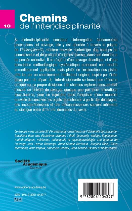 Si l'interdisciplinarité constitue l'interrogation fondamentale posée dans cet ouvrage, elle y est abordée à travers le prisme de l'indisciplinarité, manière nouvelle d'interroger des champs de connaissance et de pratique d'origines diverses dans une démarche de pensée collective.