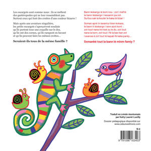 Les escargots sont comme nous : ils se méfient des gastéropodes qui ne leur ressemblent pas. Surtout s’ils font des crottes d’une couleur bizarre ! Mais après une aventure singulière, les petits escargots s’aperçoivent soudain qu’ils portent tous une coquille sur le dos, qu’ils ont des cornes, qu’ils rampent en bavant et qu’ils peuvent faire les mêmes crottes... Seraient-ils tous de la même famille ?