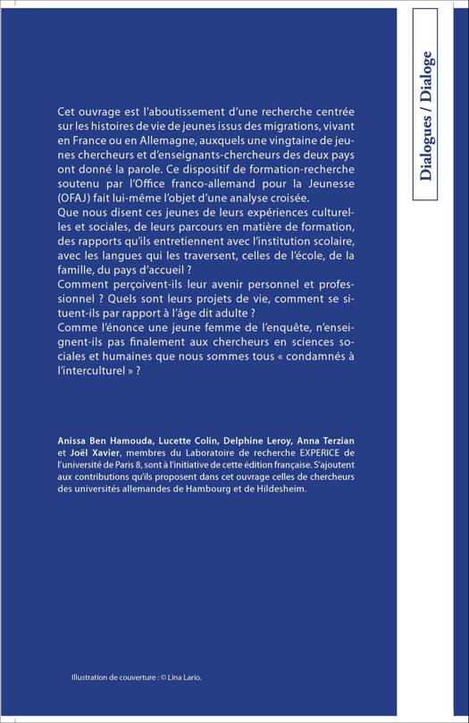 Cet ouvrage est l'aboutissement d'une recherche centrée sur les histoires de vie de jeunes issus des migrations, vivant en France ou en Allemagne. Que nous disent ces jeunes de leurs expériences culturelles et sociales, de leurs parcours en matière de formation, des rapports qu'ils entretiennent avec l'institution scolaire, du pays d'accueil ? Comment perçoivent-ils leur avenir personnel et professionnel ? Sommes-nous tous finalement « condamnés à l'interculturel » ?
