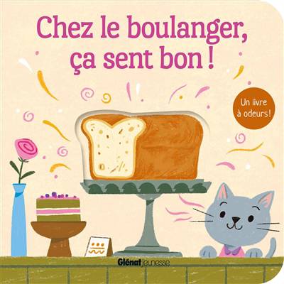Maman Chat se rend chez le boulanger-pâtissier. L'enfant découvre avec elle les odeurs douces, sucrées et épicées de sa boutique en soulevant les volets.