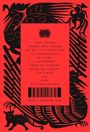 Dans le jargon du journalisme, on appelle «chiens écrasés» les brèves sur des faits-divers anodins et sordides. Prenant l'expression au pied de la lettre, Eric Chevillard écrase à chaque page, littéralement et littérairement, un chien innocent - en hommage aux célèbres Nouvelles en trois lignes de Félix Fénéon, qui en 1906 avait transformé ce degré zéro du journalisme en littérature de haute volée. Le livre est illustré de onze gravures de J.J Grandville, et agrémenté d'une Introduction à la zoolâtrie, par Eric Chevillard, ainsi que de quelques brèves considérations de l'éditrice sur Félix Fénéon et le teckel Ubu. La mise en page comporte de nombreux calligrammes et jeux typographiques, en hommage à Apollinaire et aux mots en liberté des futuristes.
