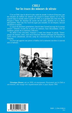 C'est au Chili, dans le désert le plus aride du monde, le désert d'Atacama, que des dizaines de milliers de mineurs ont extrait le nitrate naturel, cet or blanc exporté dans le monde entier à partir de 1830. Mais une fois l'activité jugée peu rentable, les corons ont disparu, laissant désolation et misère. En allant à leur rencontre, l'auteure a voulu leur donner la parole. Témoignages de mineurs, donc mais aussi d'anciens détenus politiques de Chacabuco, coron nitrier abandonné, devenu camp de concentration sous la dictature Pinochet.