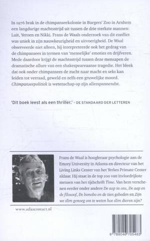 In 1976 brak in de chimpanseekolonie in Burgers’ Zoo in Arnhem een langdurige machtsstrijd uit tussen de drie sterkste mannen: Luit, Yeroen en Nikki. Frans de Waals onderzoek van dit conflict was uniek in zijn nauwkeurigheid en uitvoerigheid.