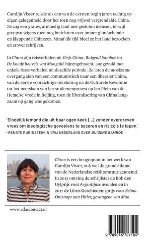 In China zijn de drie succesboeken en enkele losse verhalen die Carolijn Visser over dit immense land schreef bijeengebracht. In Grijs China, haar debuut, reist ze direct na de Culturele Revolutie in haar eentje per trein, bus en boot door China en krijgt zo een beeld van het uitzichtoize bestaan van de Chinezen onder Mao's terreur.