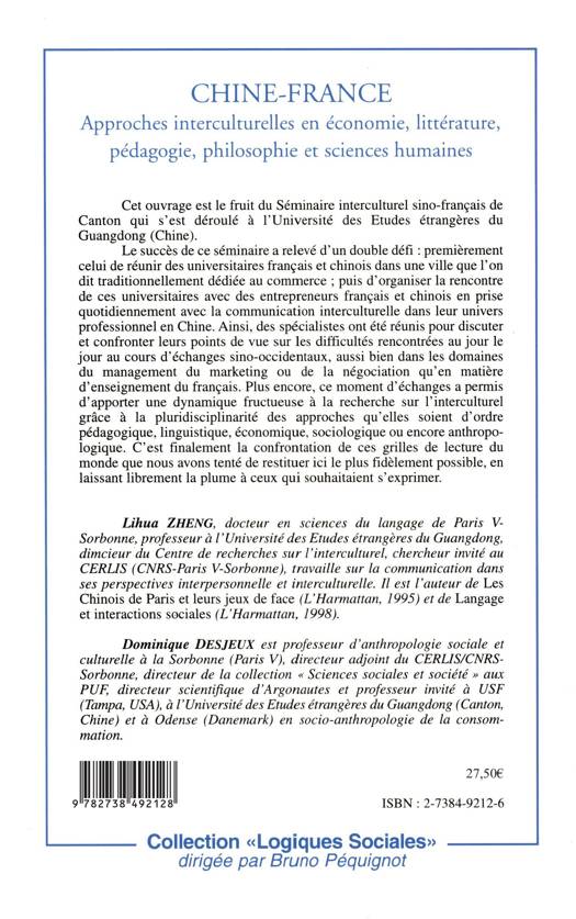 Des spécialistes ont été réunis pour discuter et confronter leurs points de vue sur les difficultés rencontrées au jour le jour au cours d'échanges sino-occidentaux, aussi bien dans les domaines du management du marketing ou de la négociation qu'en matière d'enseignement français. Ce moment d'échanges a permis d'apporter une dynamique fructueuse à la recherche sur l'interculturel grâce à la pluridisciplinarité des approches.