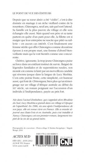 Chétive, ignorante, la trop jeune Chinongwa puise sa force dans un entêtant instinct de survie. Baigné de légendes familiales et de superstitions rurales, son monde est comme éclairé par un merveilleux candide qui résonne jusque dans la langue de Lucy Mushita. C'est cette poésie fruste, cette simplicité, cet humour aussi, qui font de «Chinongwa», bien plus qu'un témoignage sur un village d'Afrique australe au début du XXe siècle, un roman poignant sur l'accession d'un individu à l'indépendance, payée au prix fort.