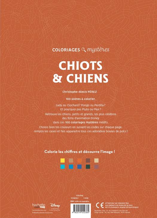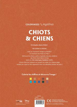 Retrouve les chiens, petits et grands, les plus célèbres et emblématiques des films d'animation Disney dans ces 100 coloriages mystères inédits.